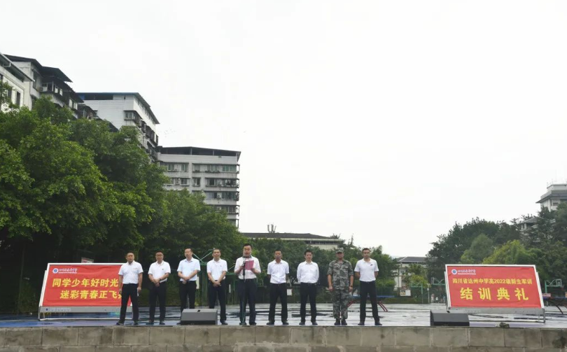 四川先锋网消息(吴发明 潘李军)7月18日清晨,四川省达州中学在翠屏校区田径场举行高2022级新生军训结训典礼,校长郭德波等校级领导出席。典礼由学校副校长王贤主持。