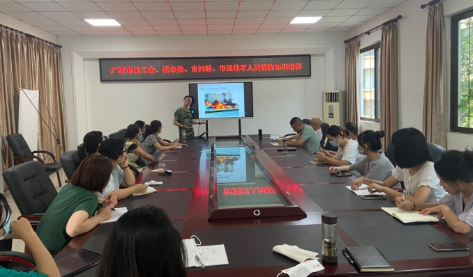 8月9日,广汉市总工会、团市委、市妇联、市退役军人事务局联合开展的职工消防知识培训在市总工会会议室举行,四家单位干部职工共聚一室参训。