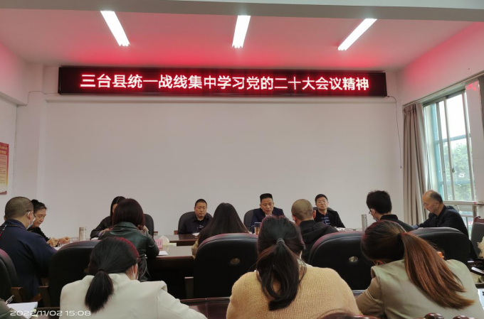 11月2日下午,三台县委统战部召开专题会议,传达党的二十大精神,全体干部职工,民主党派、统战团体、宗教界人士及港澳台侨人士代表参加。