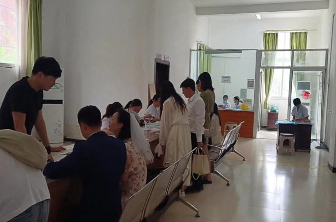 “5.20”寓意我爱你,很多适婚青年都会选择在这个特别的日子登记结婚。为保障在“5.20”当天每一对新人都能够安全、方便、快捷的接受婚前医学检查,达川区妇幼保健院提前制定活动方案,加强人力调配,抽调医、护、技专业技术人员到达川区民政局婚姻登记处开展“一站式婚检”服务。