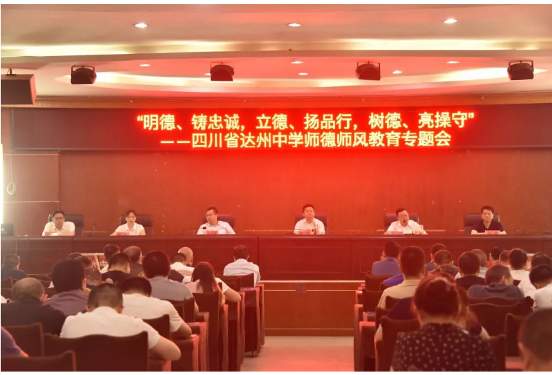 7月1日,四川省达州中学在艺体馆大会议室组织召开“明德、铸忠诚,立德、扬品行,树德、亮操守”师德师风教育专题会。会议由党委书记杨勇主持。