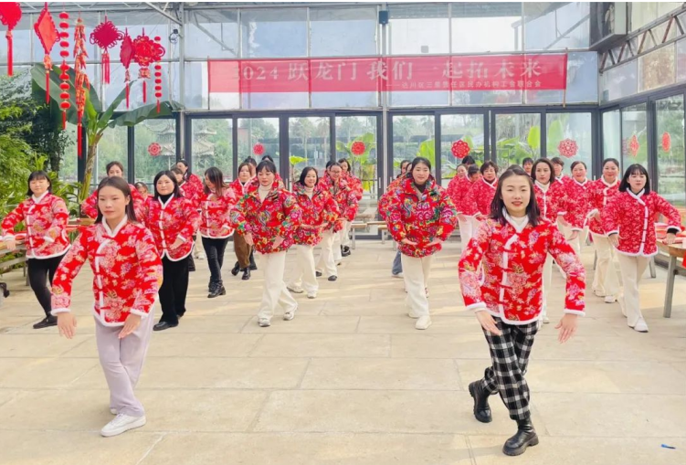 活动在“嗨起来,跃龙门”欢快的民族舞蹈中拉开序幕。活动中,女职工穿着今年最流行的东北大花袄,尽情舞动着网络流行版“科目三”的动感快乐,大家一起自创自编的蒙古舞、锅庄舞,还有现学现做精美手工、香甜美食,让达川教育工会、三里督导区全体职工手牵手,欢聚一堂,抛开烦恼,尽享欢乐。现场歌声、欢笑声、呐喊声此起彼伏,真叫一个嗨起来,团团结结跃龙门。