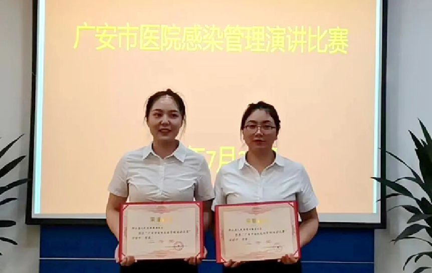 为弘扬医院感染管理文化,展现青年医务人员专业风采,7月28日,由广安市卫生健康委员会主办、市医院感染管理质控中心承办的“爱院感·致青春”演讲比赛在广安市人民医院举行。来自全市卫生健康系统的7支代表队同台竞技。经过院内层层选拔,邻水县人民医院选派内科三病区廖琳、重症医学科吴丽菲两名院感督查员组成代表队参赛,并以出色表现荣获大赛二等奖。