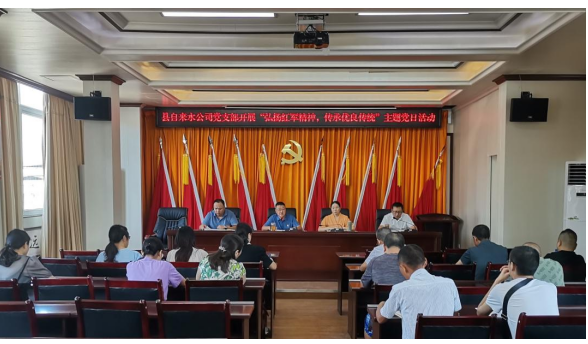 为进一步规范党员组织生活,强化党员日常教育管理,不断提高党员队伍质量,提升党支部凝聚力和战斗力,8月10日上午,开江县自来水公司党支部组织全体党员在四楼党员活动室召开“弘扬红军精神,传承优良传统”主题党日活动,党支部书记、董事长张自力主持活动。