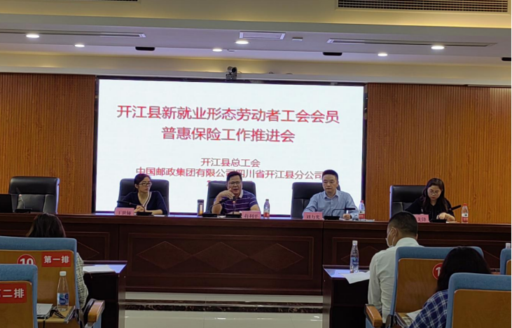 四川先锋网消息(刘祥芬)9月1日,开江县总工会与县邮政公司在县职工活动中心二楼会议室召开全县新就业形态劳动者工会会员普惠保险工作推进会。县总工会党组书记、副主席蒋利平、县总工会经审委主任张先锋、县邮政公司总经理刘力光以及县总工会机关各部室负责人、县邮政公司相关业务部室负责人、各乡镇(街道)总工会、县级有关产(行)业工会、开江经开区工会联合会工会主席、副主席参加会议。会议由县总工会党组成员、副主席王世娅主持。