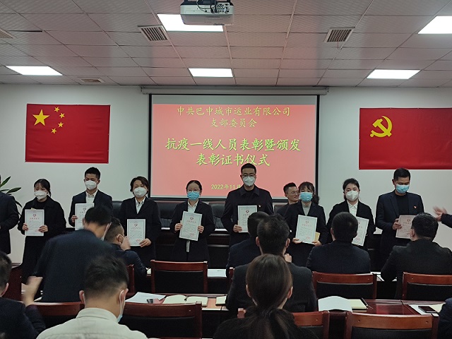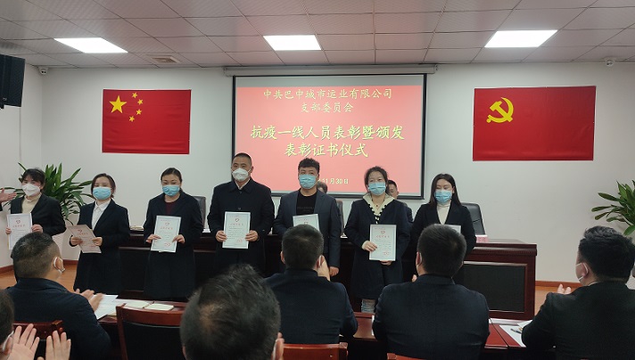 (巴中城市运业有限公司党支部书记张健在讲话中充分肯定和高度评价公司员工在抗疫一线作出的贡献)