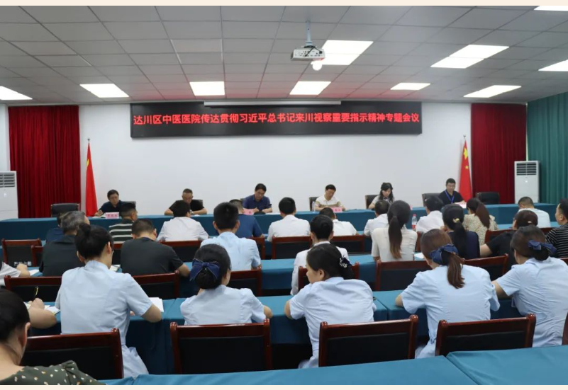 8月1日,达州市达川区中医医院召开专题会传达贯彻习近平总书记来川视察重要指示精神和省、市、区有关会议精神,研究部署我院贯彻落实意见。院领导班子成员、中层干部、部分职工代表参加会议。