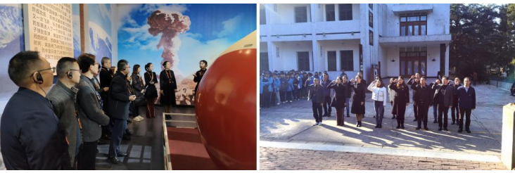 在红色教育基地中国两弹城,跟随讲解员的脚步,考察组认真观看老一辈科学家献身“两弹一星”事业的珍贵史料,老一辈科学家们的感人事迹和在艰难岁月中创就的不朽功勋,令人震撼不已。在邓稼先铜像前,考察组一行敬献鲜花,重温入党誓词,向为我国核事业奉献出青春和毕生心血的英雄们致敬!