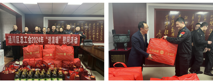 在达信保安公司,李良充分肯定了新就业形态劳动者的付出与不易,对他们爱岗敬业的精神表达敬意,并勉励大家继续在本职岗位作出更多贡献。并向保安代表送上了装有棉被、食用油等物品的“暖冬大礼包”,叮嘱职工在工作中要注意交通安全、生产安全、保重身体,同时鼓励他们继续发扬勤劳奉献的精神。大家纷纷表示,感谢工会组织送来的暖心大礼包,都是需要的物资,大家一定会把这份温暖转化为工作动力,发挥自身优势,为老百姓提供更加优质的服务。