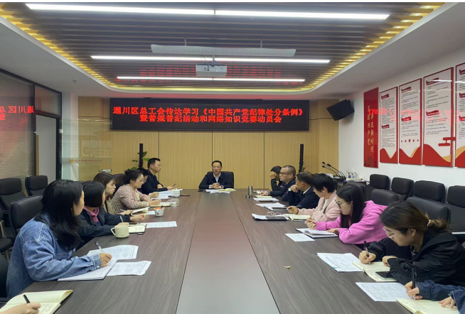 4月8日上午,达州市通川区总工会召开传达学习《中国共产党纪律处分条例》暨普规普纪活动和网络知识竞赛动员会。区总工会党组书记、副主席李良主持活动,区总工会党组成员、区工人文化宫主任谭明生,机关全体干部职工参加活动。