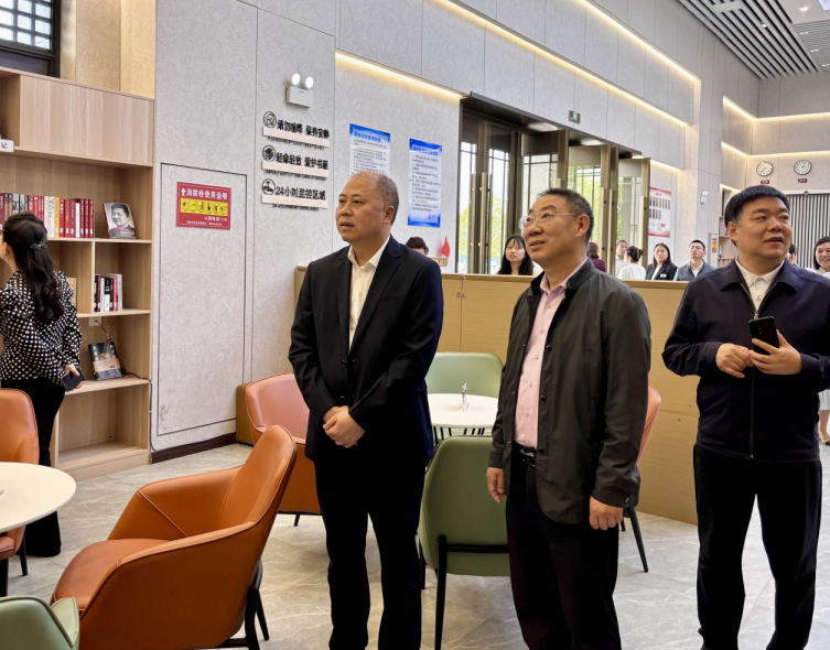 在神剑书屋,重庆市总工会一行实地察看了职工书屋的规划设计建设、空间布局,详细了解了日常维护、图书管理和职工读书活动开展等情况,并就职工书屋建设、职工思想教育工作开展过程中存在的问题和对策建议进行了深入交流。