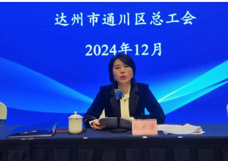 会议最后,陈升涛对2024年通川区工会工作给予充分肯定,向辛勤付出的各级工会干部表示衷心感谢。对2025年工会工作提出更高要求,她强调:希望全区各级工会继续围绕中心、服务大局,让工会工作有温度、有亮点、有口碑,助推全区各项工作蓬勃发展。一要坚持“稳”字当头,打好全年工作“收官战”。坚决树牢底线意识,持续强化风险处置,及时进行查漏补缺。严格执行工会领导在岗带班、“日报告”等制度,形成风险评估、预警预判、联动处置的工作合力,对照年初制定的目标任务逐项完成。二要坚持“干”在实处,擦亮工会服务“金招牌”。重点围绕服务职工群众建功立业、完善新就业形态劳动者维权机制、夯实工会组织基础、增强工会阵地活力等重点工作,把党和政府的关怀、工会组织的温暖及时送到职工群众的心坎上。三要坚持“谋”在当下,打好明年开局“主动仗”。坚持以习近平新时代中国特色社会主义思想为指导,全面贯彻党的二十大和二十届三中全会精神,以“深化产改、赋能发展、强基促稳、服务提质”为导向,谋划部署来年的重点工作。