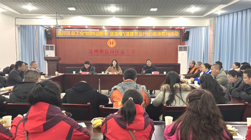 为切实做好新就业形态劳动者权益维护和服务保障工作,关心关爱货车司机,1月7日,达川区总工会召开“2025迎新春 送温暖”道路货运行业座谈会。来自四川山水运输物流有限公司、达州市网优物流有限责任公司、达州市辉鸿运业有限公司等50余名货车司机及家属代表参加。区总工会党组书记、副主席吴婷婷出席座谈会。