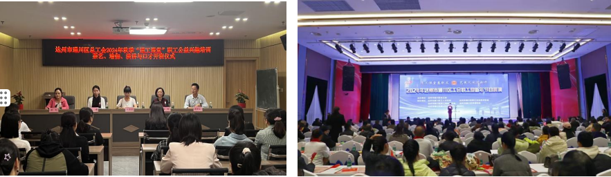 3月25日,春季“通工课堂”职工公益兴趣培训班开班,开设毛笔、太极拳、吉他、古筝等9个班,录取学员252人;10月14日,秋季“通工课堂”职工公益兴趣培训班开班,开设钩针编织、演讲与口才、茶艺、旗袍形体等16个班,录取学员307人。12月27日,通川区总工会在达州市工人文化宫举行“通工课堂惠职工 艺展风采迎新年”2024年达州市通川区工会职工迎新年节目展演,为职工提供了一个展示才艺和交流学习的平台,以高质量的文化活动引领职工助力高质量发展。