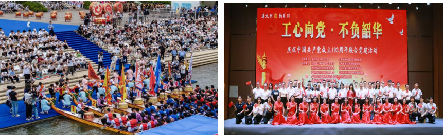 5月28日—29日,2024“川渝陕”龙舟邀请赛“划遍四川”(通川站)比赛在州河塔沱达州港流域举行。来自外地和本地共33支龙舟队伍齐聚一堂,展开了一场激动人心的水上角逐。区总工会牵头9个区级部门组建了“通川职工代表队”。本次比赛展现争当率先建成共同富裕示范区“排头兵”的职工风采。6月28日,由区总工会、区委统战部主办的“工心向党·不负韶华”庆祝中国共产党成立103周年联合党建活动在达州市工人文化宫举办。整场活动以缅怀党的光辉历史、讴歌党的丰功伟绩为主旋律,为观众呈现了一场主题鲜明、形式多样、内容丰富的文化盛宴。