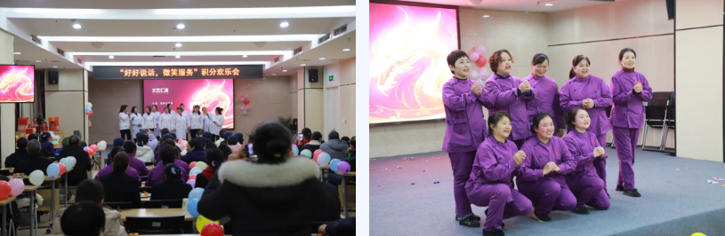 娱乐节目环节精彩纷呈,消毒供应中心器械收发员带来的单口相声《方言计划生育好》让现场笑声不断;电梯班展示了平日培训的优秀成果;洗涤部合唱的《酒醉的蝴蝶》则用歌声传递了团队间的默契与和谐;运送组的小品、ICU护工精心编排的情景喜剧等节目,充分展现了员工多才多艺的风采和积极向上的精神风貌。