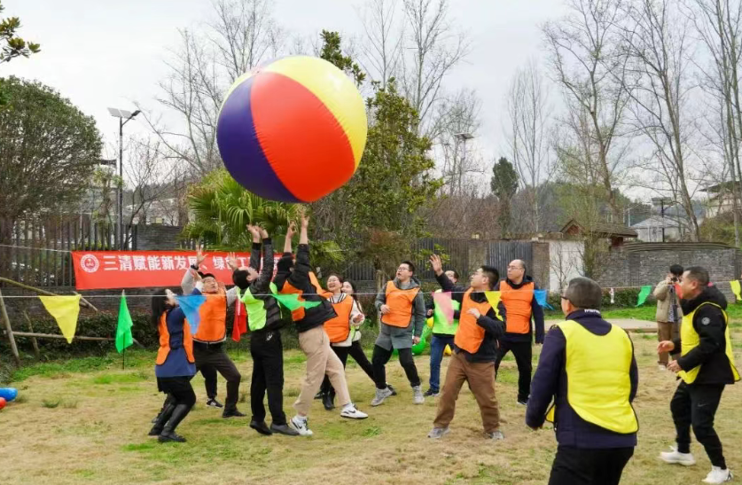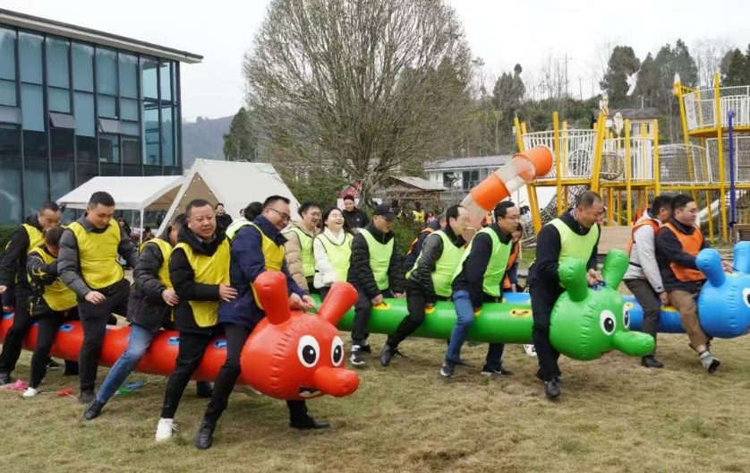 “加油、加油、加油……”3月6日,在宣汉县君塘镇陌上森林田园综合体内加油声、欢呼声、掌声此起彼伏,一片欢腾。来自达州市生态环境局机关、市环科院和市污防中心的干部职工们欢聚一堂,开展了形式多样的户外拓展活动,旨在进一步促进干部职工身心健康,增强广大干部职工的疑聚力、战斗力,积极营造团结向上的机关氛围。 本次活动是以“三清赋能新发展·绿色工建启新程”为主题,由市生态环境局机关工会牵头,由市环科院、市污防中心共同参与。活动伊始,主持人临时将大家分成了三个小组,每组人员在现场即兴给自己的小组取上一个名字,设计一个LOGO。活动内容有团体顶气球比赛、团体骑木马奔跑比赛和传乒乓球等项目。同时,活动中大家还可以通过竞技的方式赢得小礼品。