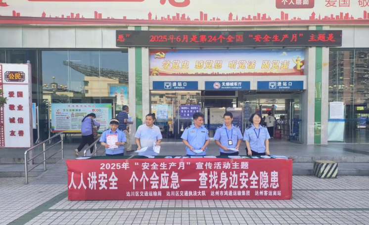为深入贯彻落实国家、省、市、区关于安全生产工作的决策部署,切实提升社会公众交通安全意识和应急避险能力,6月16日,达川区交通运输局精心组织,在仙鹤路广场和南客站等地开展了以“人人讲安全,个个会应急”为主题的“安全生产月”宣传活动,旨在将“安全第一、生命至上”的理念深植人心,为全区交通运输行业安全稳定运行营造浓厚氛围。