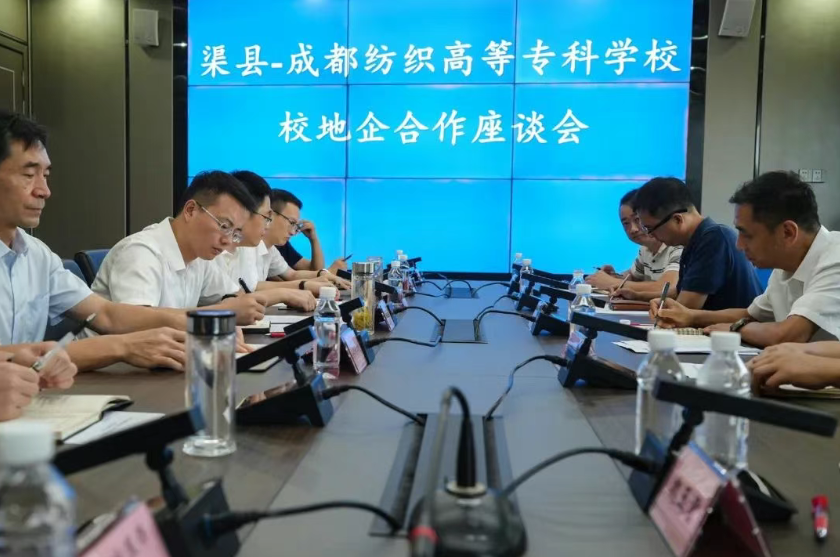 在随后召开的校地企合作座谈会上,校地企三方就产业人才现状及合作需求进行了交流探讨,成都纺织高等专科学校毕业生代表分享了在渠县轻纺服饰企业工作的体会和收获。