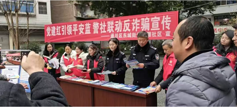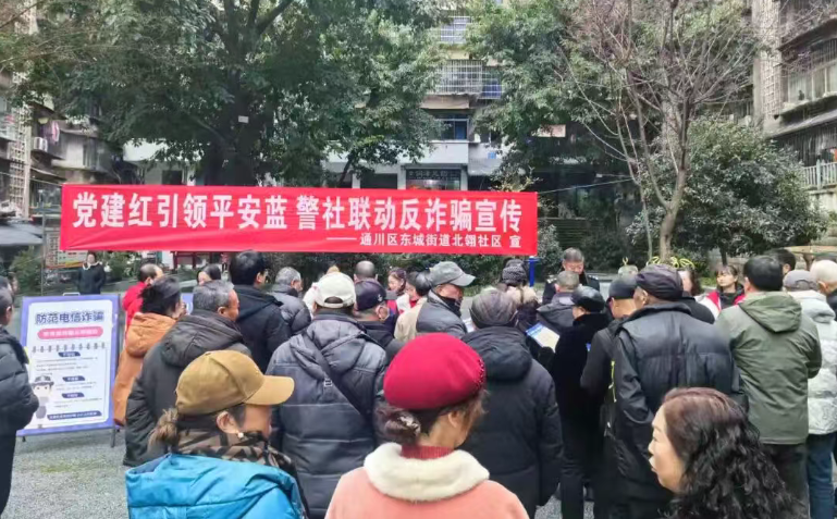 近日,通川区东城街道北翎社区党委与东城派出所党支部携手开展“党建引领聚合力 警社联动护民安”反诈宣传专项活动,吸引辖区党员、居民及商户代表共计120余人积极参与。