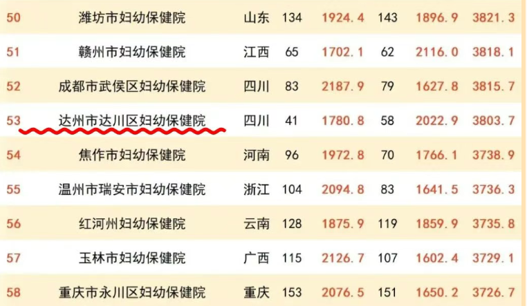 祝贺:达川区妇幼保健院是达州市唯一荣登全国前100强的妇幼保健院!