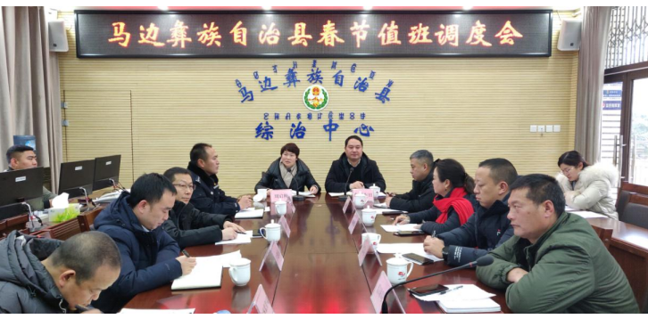 经请示县委、县政府总值班领导鲁子军林同志同意,2月2日(大年初二),马边彝族自治县在县综治中心视频会议室召开春节值班视频调度会议,了解各乡(镇)、部门春节期间值班值守、森林防灭火、疫情防控、环境保护、安全生产、服务保障农民工等工作情况,安排部署相关工作。县委常委、宣传部部长周启梅出席会议并讲话。会议由县政府副县长曲别布日主持。