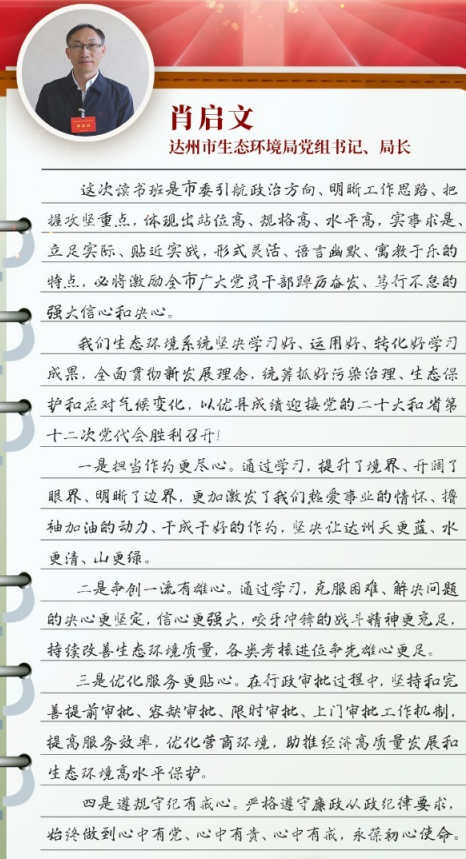 肖启文: 持续改善生态环境质量,咬牙冲锋的战斗精神更充足