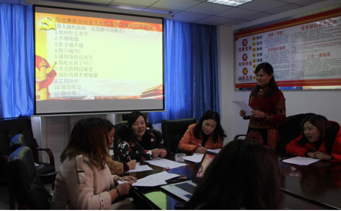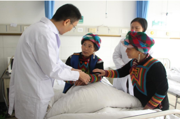 ——关心关爱,无微不至。为方便彝汉百姓更便捷就医,特别设立一站式服务中心,该中心集医保政策咨询、病情证明盖章、出生医学证明初次申领、核酸检测条码打印等服务,进一步优化流程,为患者提供一站式便捷服务。为进一步方便各族群众看病,将导诊台设立为“彝汉双语”导诊,设立相应的彝语标识标牌,并安排少数民族双语导诊人员主动引导少数民族患者挂号、检查、看病和取药。合理分配科室人员,基本做到各科室都配有少数民族医务人员,根据本科室特点,制定常用“彝汉双语”卡,做到人人会讲彝语,为增进与彝族患者的亲切感,改善就医体验,每天早上查房采用彝汉双语查房,遇到有不太懂汉语的少数民族患者时,采用彝语交流,促进民族之间友谊。为保护隐私,为前来就诊并带有嗷嗷待哺婴儿的育龄彝族妇女,提供温馨舒适的母乳喂养环境,内设有婴儿床、空调、微波炉、洗手池等设备。医院志愿者长期开展辅助挂号、送医到家、义诊等健康服务活动。医院党委书记谢蓉经常进村入户看望慰问少数民族群众,了解他们的生活状况及健康状态,给予关心关爱。建立健全协调、处置涉及民族矛盾的纠纷和突发事件应急预案,定期排查涉及民族因素的矛盾纠纷;发生医患纠纷时,院方积极组织协调处理,严格依法办事,有效保障各民族群众的合法权益。医院通过“传帮带”方式,每年下派优秀医务人员到基层偏远乡镇卫生院帮扶,不仅让优质医疗服务下沉到基层卫生院,同时为基层卫生院培养当地少数民族医务人员,有效改善了基层卫生院的医疗服务水平。定期组织医护人员到村(社区)开展义诊义检咨询活动,每年组织医疗下乡活动不少于2次,让各族群众在家门口就能学到健康知识和接受检查,为群众办好事、办实事。