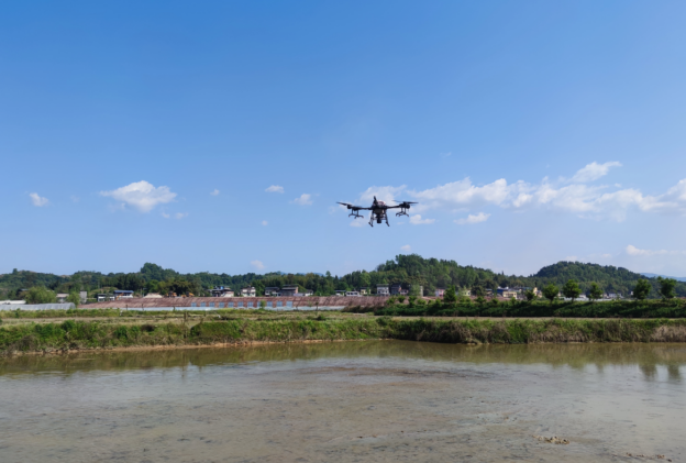 (无人机飞播水稻现场)