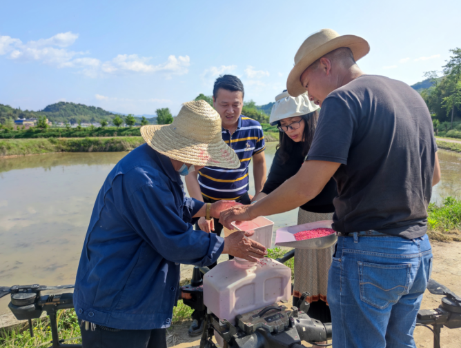 (朱登亚现场操作无人机播种水稻)
