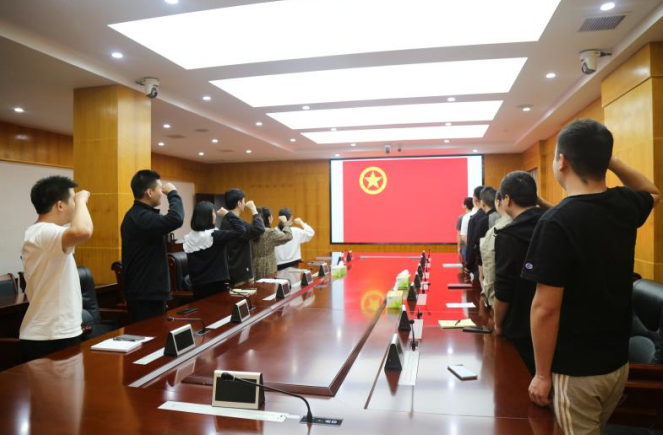 “我志愿加入中国共产主义青年团……”,4月22日上午,青年干警们整齐列队,庄严肃立,高举右手,在鲜红的团旗下庄严宣誓,铿锵有力的誓言回荡在每个干警心中。宣誓结束后召开“五四精神”学习学习会。通过重温入团誓词和“五四精神”学习讨论会,让青年干警对五四运动精神有了更深的领悟,坚定了理想信念,明确了青年干警的责任与义务,在今后的工作中践行司法为民的初心和使命。