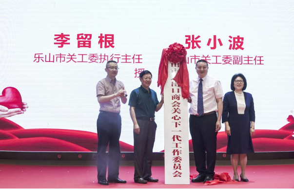 随后进行了乐山市进出口商会关心下一代工作委员会授牌仪式,市关工委执行主任李留根与市关工委副主任张小波为乐山市进出口商会关心下一代工作委员会共同授牌。
