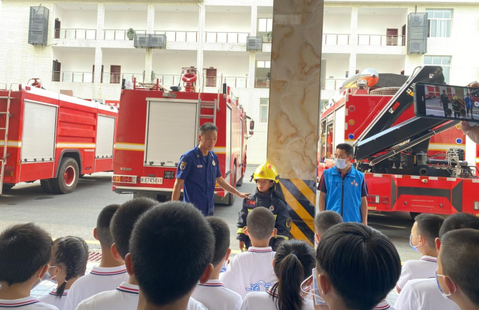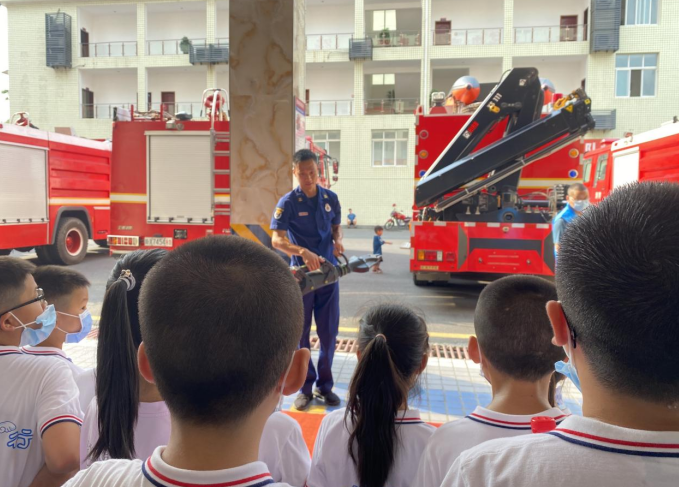 随后,消防员将小朋友带到训练场,表演了高空拉绳下楼的救援训练科目,精彩的表演赢得了小朋友的热烈掌声,孩子们第一次深切感受到最美逆行者们的军人风采,纷纷感慨:“那么高的楼层,看起来好危险,消防员叔叔要快速上下还要去救人,真是太不容易了!”