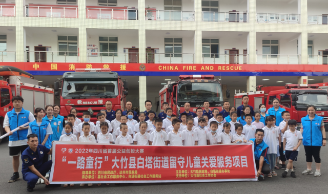 大竹县白塔街道举行“与蓝朋友一路童行,走进消防大队”主题活动
