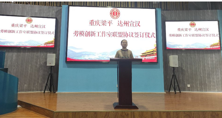 8月6日下午,在重庆市都梁科技企业孵化园,重庆市梁平区与四川省宣汉县签署《贺秀芳劳模创新工作室和李进峰劳模创新工作室联盟协议》。宣汉县总工会党组书记、副主席陈小平、梁平区总工会副主席李显炜等相关领导出席签字仪式。