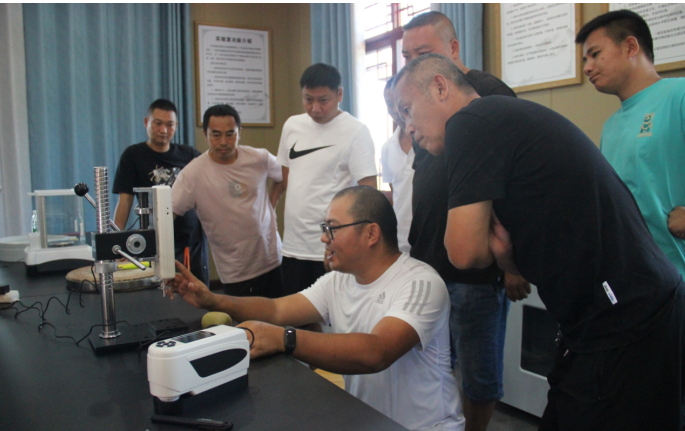 在马边县荣丁镇马脑村马猴部落“马边猕猴桃专家大院”,从口头讲解到现场示范,专家对如何利用精确度0.01g电子天秤、色差仪、硬度计、果蔬烘干机、PAL-1O数显折光仪等进行检测进行了详细讲解。随后,县内部分猕猴桃种植户在专家的指导下,分工合作,按照流程对猕猴桃进行了果实检测。