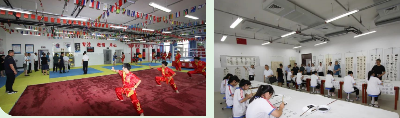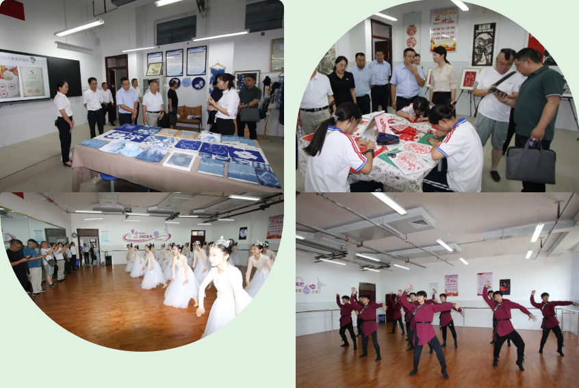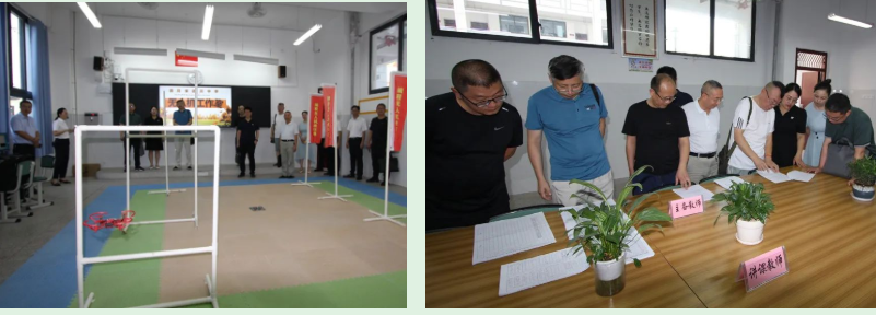 进入达川中学三里校区正大门,专家们观看展板、听取讲解,了解学校基本情况、校园文化、校园布局、办学特色等。在无人机室,同学们向专家组用心展示平时的训练成果,现场编程,按规程操作无人机。在高一年级组教研室,教务主任王莉向专家们介绍了智慧课堂、教师赛课、教学教研、培优补差、班级间博弈等情况。在综合楼实验室,专家组现场查看了理化生实验室,了解实验室安全管理、实验器材和药品管理、废弃物品处置等情况。在武术散打训练基地,同学们展示了达州市非遗项目法门武术和散打,专家们对学生在各级各项赛事中获得的众多奖项表示赞赏。在综合楼三楼,专家组先后观看了女生群舞、男生群舞和声乐表演,不时予以掌声肯定。在综合楼四楼,专家组先后观看了书法、绘画、剪纸、扎染、雕塑等作品展。各类展示给专家组留下了深刻的印象,专家组成员认真观看表演,不时驻足观看,相互交流,不时现场讨论,赞叹不已。有个专家还拿出手机拍摄,说“这个表演得太好了,我得做个短视频分享给大家”。