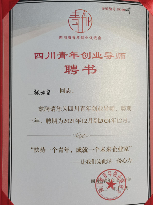 省劳动模范、当代工匠、基层工会企业负责人张春雷受聘“四川青年创业导师”