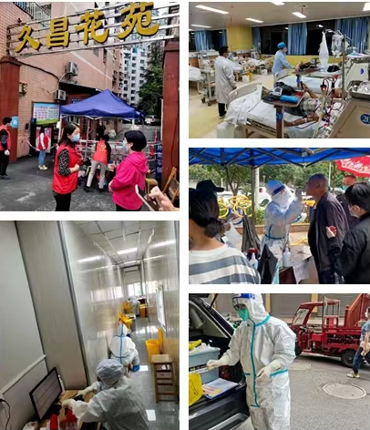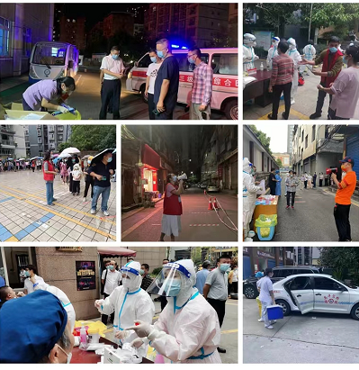 还有一些党员,虽然不能像那些白衣卫士一样,战斗在疫情防控的最前沿。但他们仍尽己所能,投入到这场防疫战斗中。他们中有组织爱心车队的英华驾校党员王于华,为核酸检测人员保驾护航;有第一次身穿“大白”的党员刘佳,在全员核酸检测中采集信息;还有身穿红马甲,活跃在一个个社区,为核酸检测、居民出入、物资配送忙碌的李恒卫、黄晨曦、杨斌、罗科君等人。