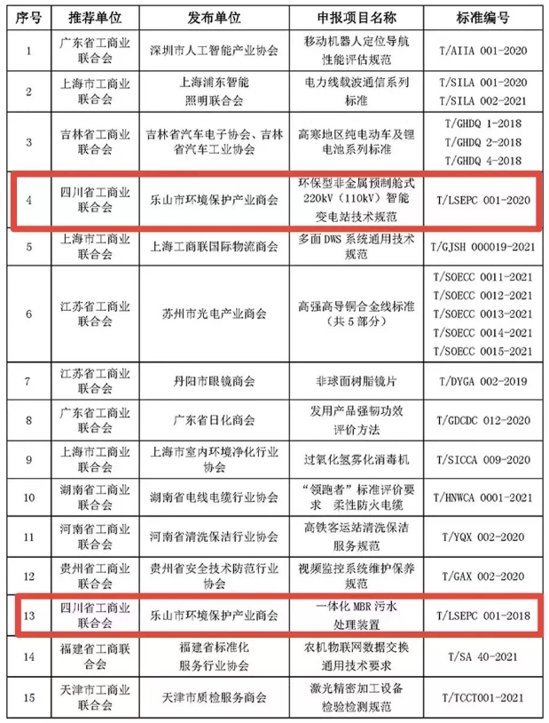 近年来,在国家政策的大力支持下,环保产业总体规模迅速扩大,产业领域不断拓展,工业烟气治理、污水处置、固废处置等方面的业务如雨后春笋,爆发式增长。政策导向及市场需求推动产业发展创新,但部分细分领域的相关质量标准并未及时跟进,许多技术环节出现行标缺失现象,为深入贯彻习近平总书记关于标准化工作重要论述,认真实施《标准化法》、《国家标准化发展纲要》,进一步适应行业发展和市场对标准的需求、促进行业创新和自律,提升产品核心竞争力,乐山市环保产业商会从成立之初就持续推动环保行业团体标准建设:2018年10月,由相关会员单位联合起草经专家严格技术审查,出台了乐山市第一个行业团体标准《一体化MBR污水处理装置》;2020年5月,商会第二项团体标准“环保型非金属预制舱式220kV(110kV)智能变电站技术规范”诞生。2项团标的出台,在相关国家标准、行业标准和地方标准缺失的情况下迅速填补现有标准空白,建立极大提升了商会自身软实力,在实现商会组织创新的同时有力促进行业创新和自律、推动区域环保企业的高质量发展,提升了行业产品和服务的市场竞争力,为商会成员单位的市场拓展提供了动力。