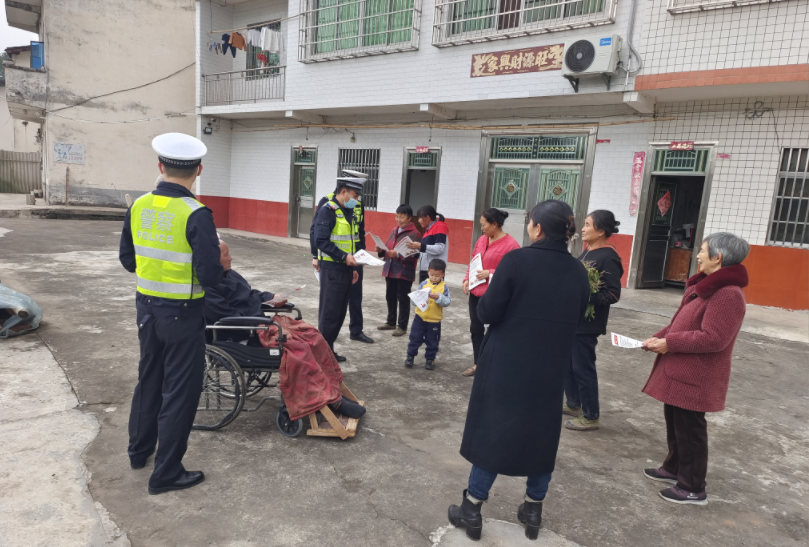 为增强农村交通安全宣传教育工作实效,提升农村地区交通参与者的交通安全意识、法制意识和文明意识,全力预防和减少道路交通事故发生。近日,四川省邻水县公安局交警大队组织民辅警到丰禾镇福利村,开展交通安全宣传进家庭活动。