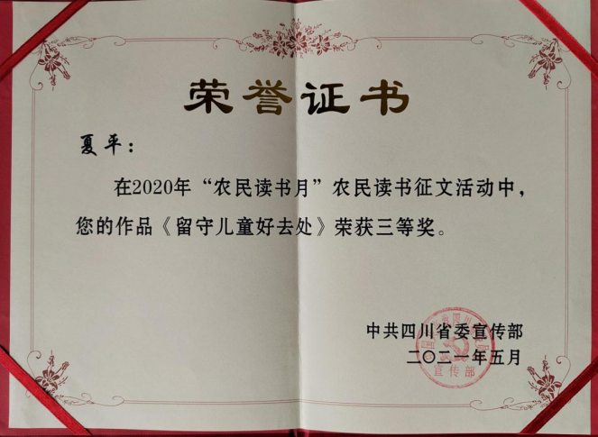 近日,中共马边彝族自治县委宣传部新闻工作者夏平,收到中华全国新闻工作者协会颁发的从事新闻工作三十年荣誉证书和荣誉证章,这是对夏平同志孜孜不倦从事新闻宣传工作34年,为社会主义新闻事业作岀了积极贡献的高度肯定。夏平是马边唯一获此殊荣的新闻工作者。