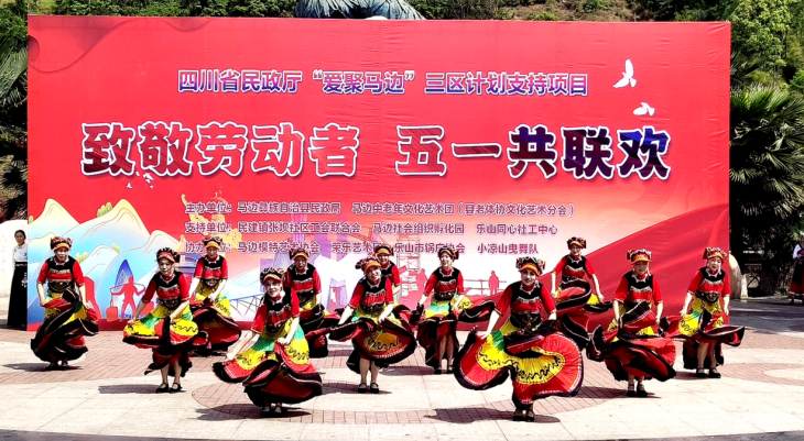 4月27日,四川省民政厅“爱聚马边”三区计划支持项目——“致敬劳动者 五一共联欢”在马边熊猫广场举行。本次活动由马边民政局、马边老体协文化艺术分会(马边中老年文化艺术团)主办,民建镇张坝社区工会联合会、马边社会组织孵化园、乐山同心社工中心支持,马边模特艺术协会、荣乐艺术团、乐山市锅庄协会、小凉山曳步舞蹈队协办。共有162位演职人员参与。