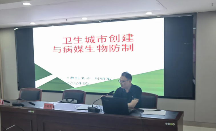 为深入推动2024年达川区病媒生物防制工作,普及病媒生物防制技术,改善城乡人居环境,夯实国家卫生城市创建基础。5月9日,区爱卫办在区疾控中心12楼会议室,组织召开了“2024年达川区病媒生物防制和病媒生物孳生地调查培训会”,此次培训邀请市创卫办副主任刘明军、区疾控中心周思佳等进行授课,会议由区卫健局副局长王敬轩同志主持。翠屏、三里坪、杨柳街道分管领导、建成区各社区(村)主要负责人共计50余人参加。