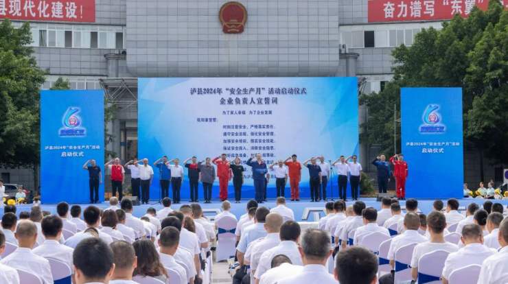 “为了家人幸福,为了企业发展。我郑重宣誓:时刻注意安全,严格落实责任......”6月6日上午8点30分,一阵洪亮的安全承诺响彻泸县人民广场,安全生产的“关键主体”——企业主要负责人代表在这里庄严宣誓,正式拉开了泸县2024年“安全生产月”启动仪式的序幕。
