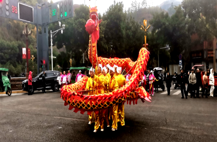 1月25日上午10点,由马边彝族自治县老年人体育协会文化艺术分会承担的龙灯锣鼓拜新年拉开帷幕。60多人巡游队伍身着整齐服装,抬着“马边彝族自治县人民政府向全县人民拜年”的横幅,敲锣打鼓,舞着龙灯,向全县人民拜年,引来许多观众驻脚观赏,赢得广大群众的一致好评。