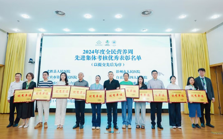 5月17日,由四川省卫生健康委员会、四川省营养学会、四川省营养师协会联合主办的“四川省2024年全民营养周暨‘5.20’中国学生营养日启动仪式”在成都医学院学术报告厅隆重举行。 仪式上,对2024年四川省“全民营养周”活动中表现卓越的优秀单位进行了表彰。达州市第三人民医院临床营养科凭借在营养健康科普工作中的突出贡献,荣获“四川省全民营养周优秀单位”称号。 本次“全民营养周”以“奶豆添营养,少油更健康”为主题,旨在推动全民合理膳食行动,提升居民营养健康素养。活动期间,四川省内多家单位及科技工作者积极参与,开展了形式多样、内容丰富的科普宣传活动。 重庆医科大学附属第一医院达州医院、达州市第三人民医院、达州市达川区人民医院临床营养科积极响应号召,充分发挥专业优势,通过组织义诊咨询、举办健康讲座、开展社区服务等系列活动,将科学、实用的营养知识普及至千家万户,为引导区域居民养成健康的生活方式作出了重要贡献。 达州市第三人民医院临床营养科成立于2016年,负责全院临床营养诊疗、教学、科研以及营养宣教等多项任务。具体工作涵盖住院病人营养会诊、营养查房、营养支持与指导、医疗膳食设计、慢性病患者健康教育与指导等,并根据临床需要,为患者制定个体化治疗膳食,并提供专业的居家营养指导,为保障患者健康发挥了积极作用。 此次获奖不仅是对三院营养健康工作的肯定,也彰显了其在推动区域营养科普和健康促进方面的示范作用。未来,三院将继续深化营养健康服务,为“健康中国”建设贡献力量。