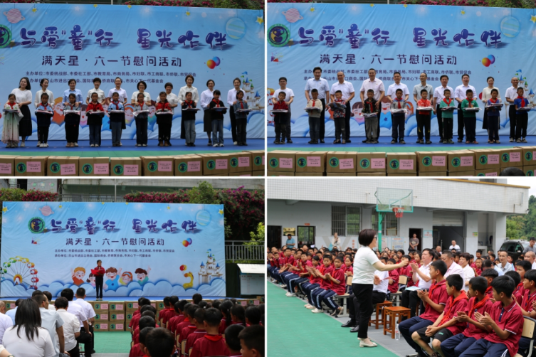活动高潮迭起,企业家代表与政府部门领导深情朗诵《星星点灯》,那温暖的声音仿佛星光洒落心田;随后,大家与孩子们手牵手,齐声唱响《让我们荡起双桨》,悠扬的歌声乘着山风飞向远方,为这个儿童节画上了最美丽的色彩。