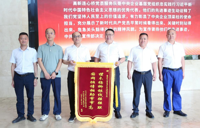 7月17日,四川省水电集团开江明月电力公司党委书记、董事长蒲志安率队将一面绣有“檀木杨柳银线强强联 国网倾情相助节节高”的锦旗送到国网达州供电公司总经理、党委副书记肖磊手中,感谢国网达州供电公司在檀杨110千伏双回线路工程建设中给予的大力支持和帮助,助力开江电网实现历史性跨越,为开江县域经济高质量发展注入强劲动能。