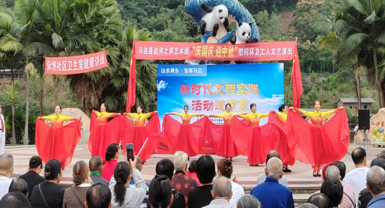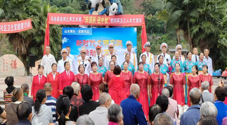 金秋送爽,丹桂飘香。9月27日,马边张坝熊猫广场,座无虚席,热闹非凡。马边新时代文明实践活动进万家暨马边老体协边河之声分会“庆国庆 迎中秋”慰问环卫工人文艺演出在此隆重举行。